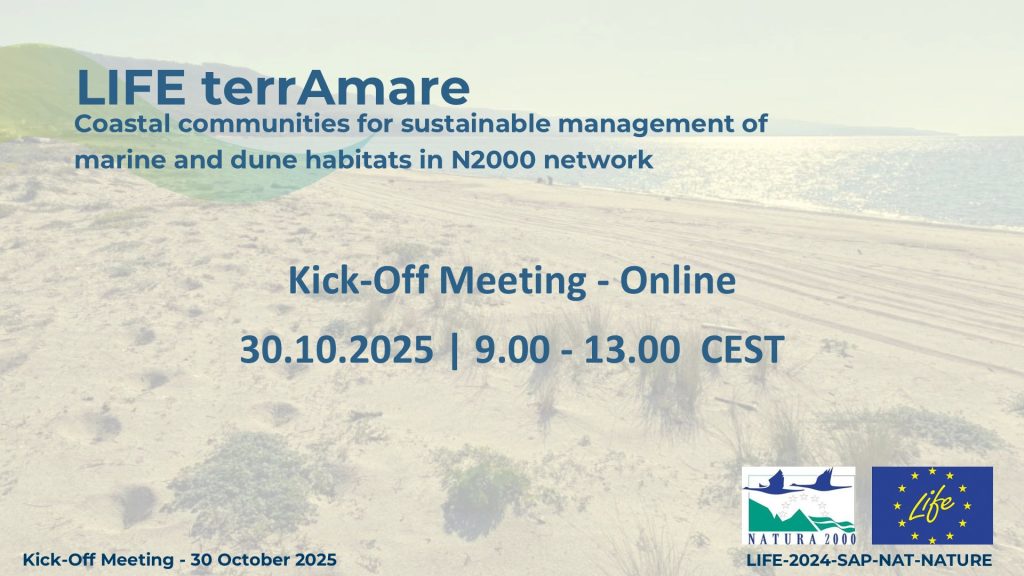 Il 1° ottobre 2025 ha segnato l’inizio ufficiale di LIFE terrAmare, un progetto ambizioso che per i prossimi sei anni si impegnerà a fondo nella tutela e nel ripristino di alcuni degli habitat più preziosi e vulnerabili del nostro mare: le praterie di Posidonia oceanica e i sistemi dunali costieri. Questo lungo percorso, finanziato dall’Unione Europea, ha vissuto il suo primo momento di confronto operativo lo scorso 30 ottobre, quando i partner si sono riuniti virtualmente tra Italia e Grecia per un kick-off meeting che ha trasformato la visione progettuale in un piano d’azione concreto.